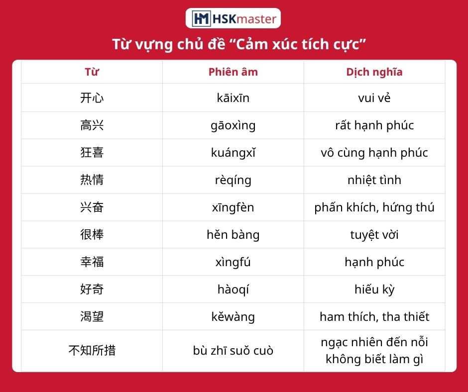 – Từ vựng tiếng Trung chỉ cảm xúc tích cực