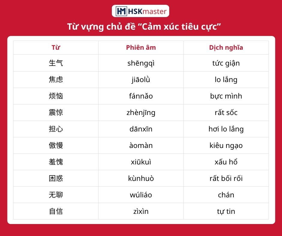 – Từ vựng tiếng Trung chỉ cảm xúc tiêu cực