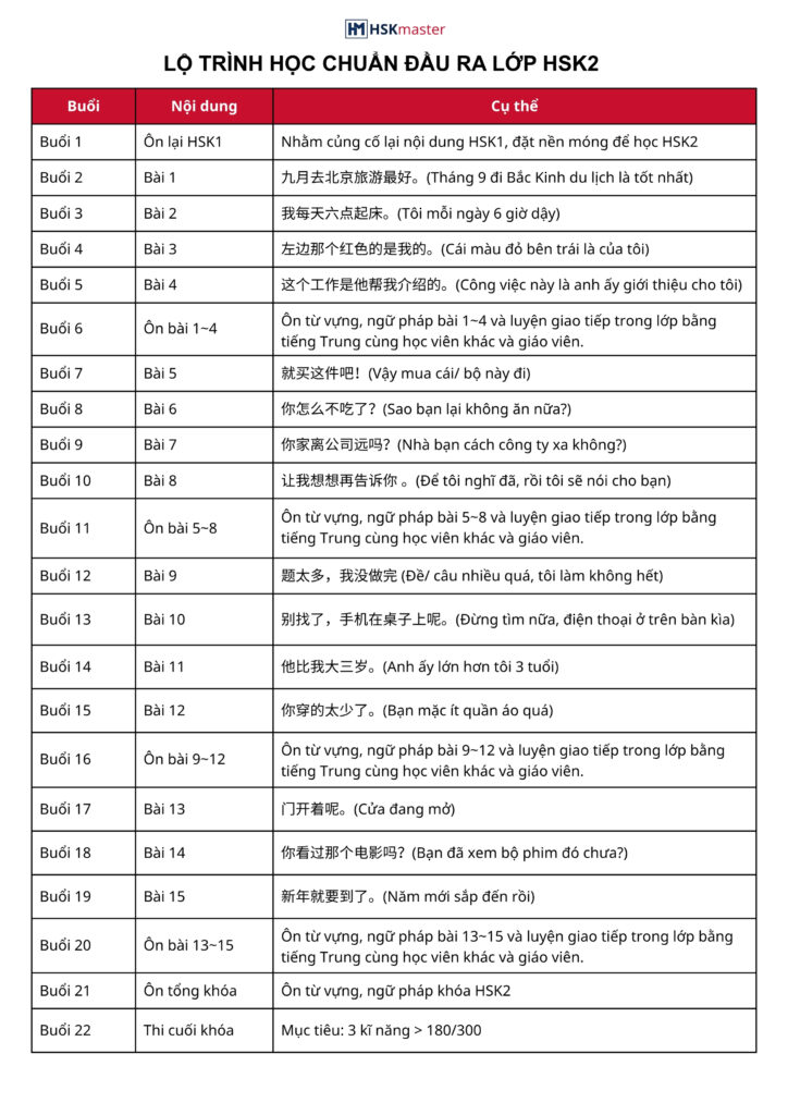 Mục tiêu khóa học HSK2
