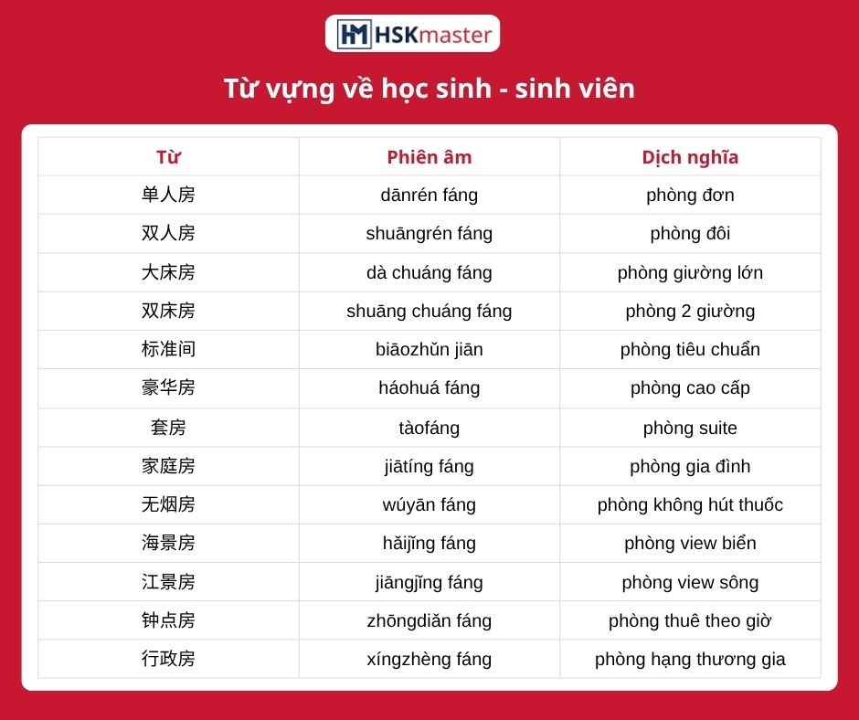 宿舍长 – sùshè zhǎng – Trưởng phòng ký túc xá