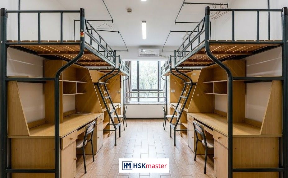 👉 Trong ký túc xá (宿舍 – sùshè) ở Trung Quốc thường có phòng nước nóng (开水房 – kāishuǐfáng), vì sinh viên Trung Quốc rất hay uống nước nóng, mỗi người đều có một bình nước cá nhân luôn mang theo người. Ngoài ra, nhiều trường có siêu thị mini (超市 – chāoshì) ngay trong khuôn viên trường, rất tiện lợi.