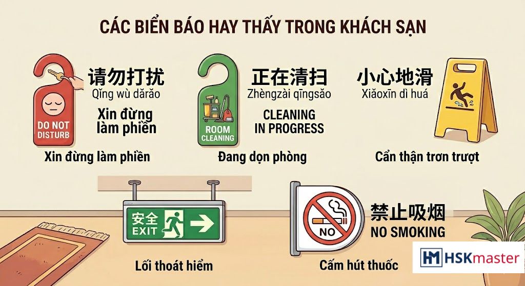 Một số biển báo thường thấy trong khách sạn: