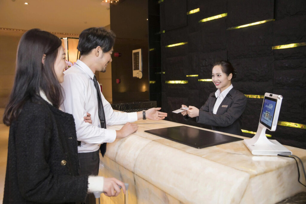 Mặc dù đặt qua App là xu hướng, nhưng việc đặt trực tiếp tại quầy (前台 – Qiántái) hoặc gọi điện thoại (电话预订 – Diànhuà yùdìng) vẫn cực kỳ quan trọng trong các tình huống: Bạn đi công tác đột xuất, App báo hết phòng nhưng thực tế khách sạn vẫn còn phòng trống, hoặc bạn muốn xem phòng trước khi quyết định ký hợp đồng ở dài hạn cho đoàn công tác.