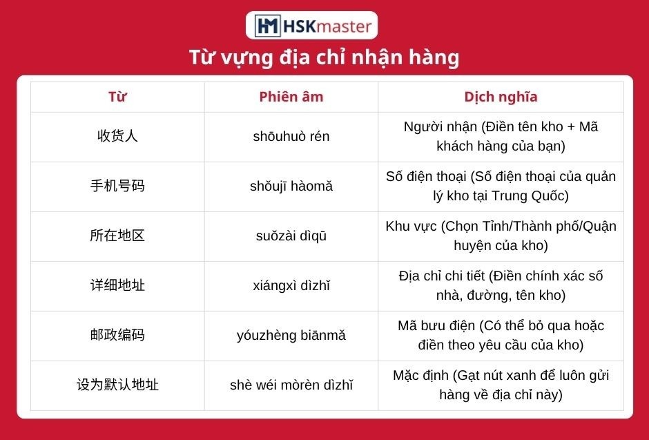 Bảng từ vựng chi tiết khi điền Địa chỉ nhận hàng