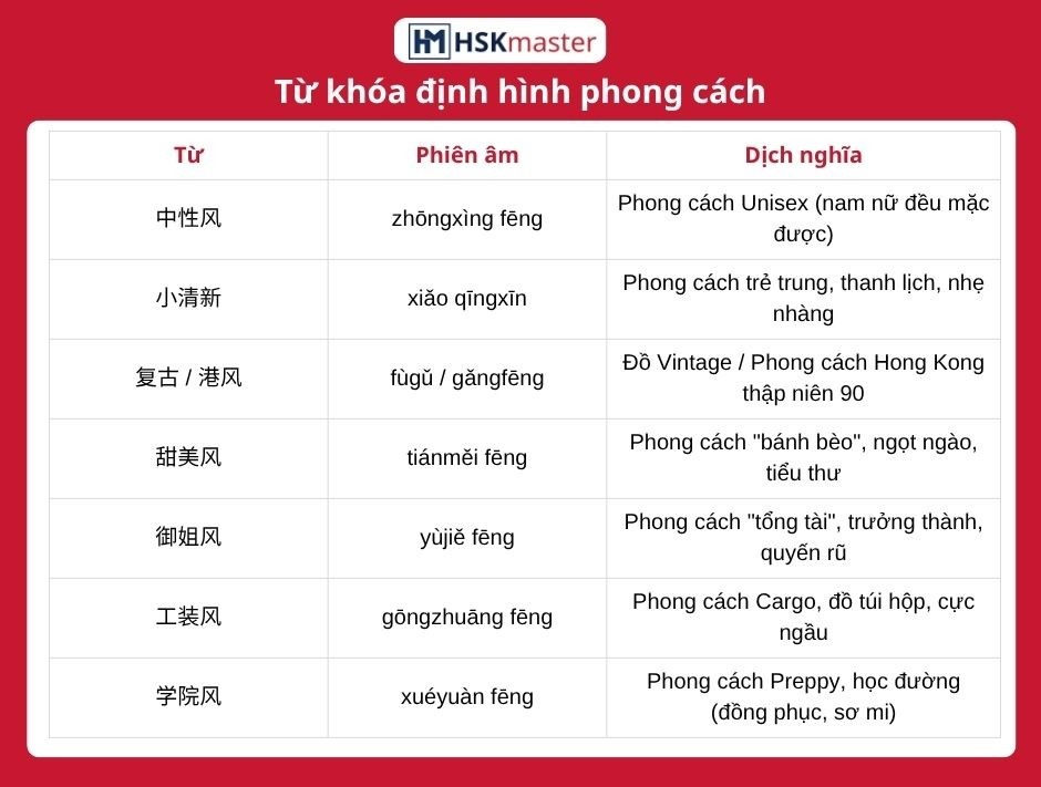Nhóm từ khóa định hình Phong cách (风格 – Fēnggé)