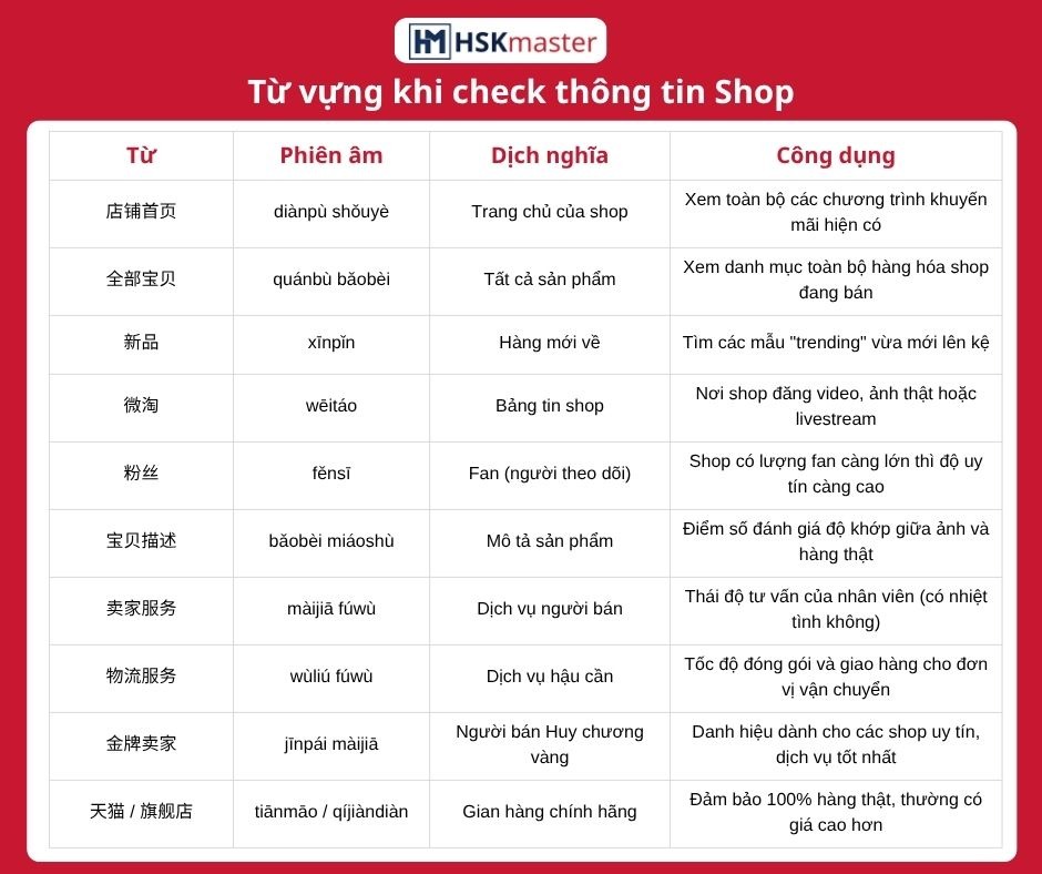 Bảng Từ Vựng khi vào check thông tin Shop (Đánh giá uy tín)