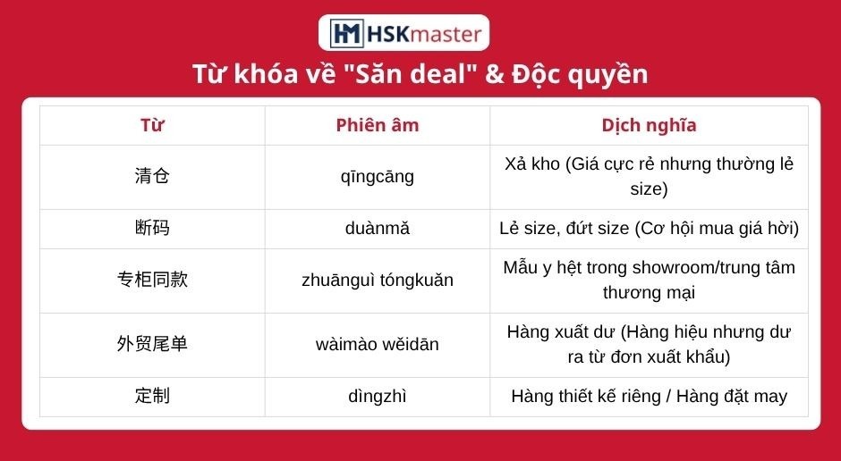 Nhóm từ khóa “Săn deal” & Độc quyền (优惠 & 货源)