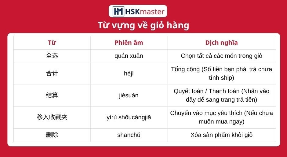 👉Kiểm tra giỏ hàng (购物车 – Gòuwù chē)