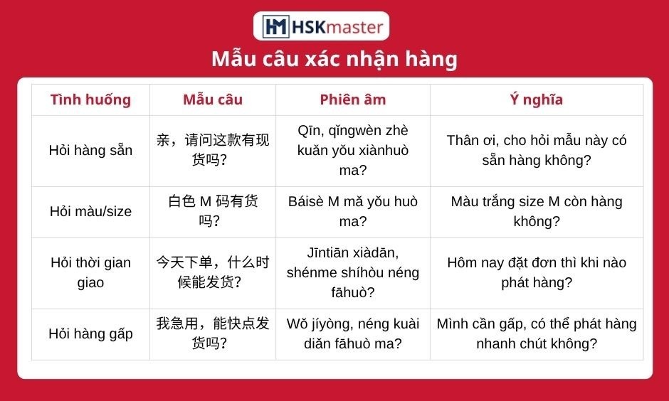 Nhiều shop vẫn để hiển thị còn hàng nhưng thực tế đã hết hoặc là hàng đặt trước (预售 – yùshòu). Bạn cần xác nhận bằng các mẫu câu sau: