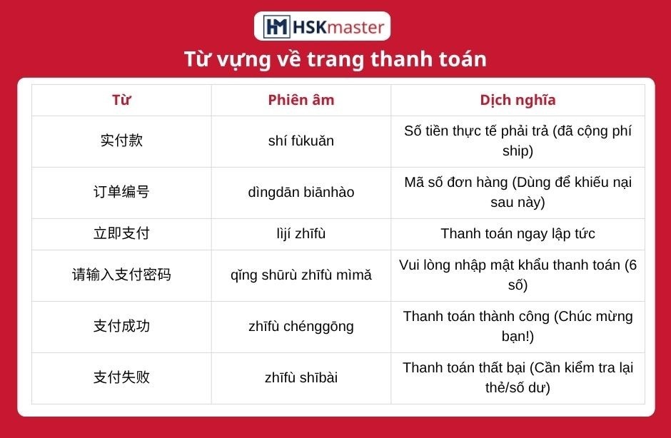 Bước 4: Thanh toán (支付 – Zhīfù) – Những thuật ngữ cần biết để không bị mất tiền oan khi thực hiện giao dịch quốc tế