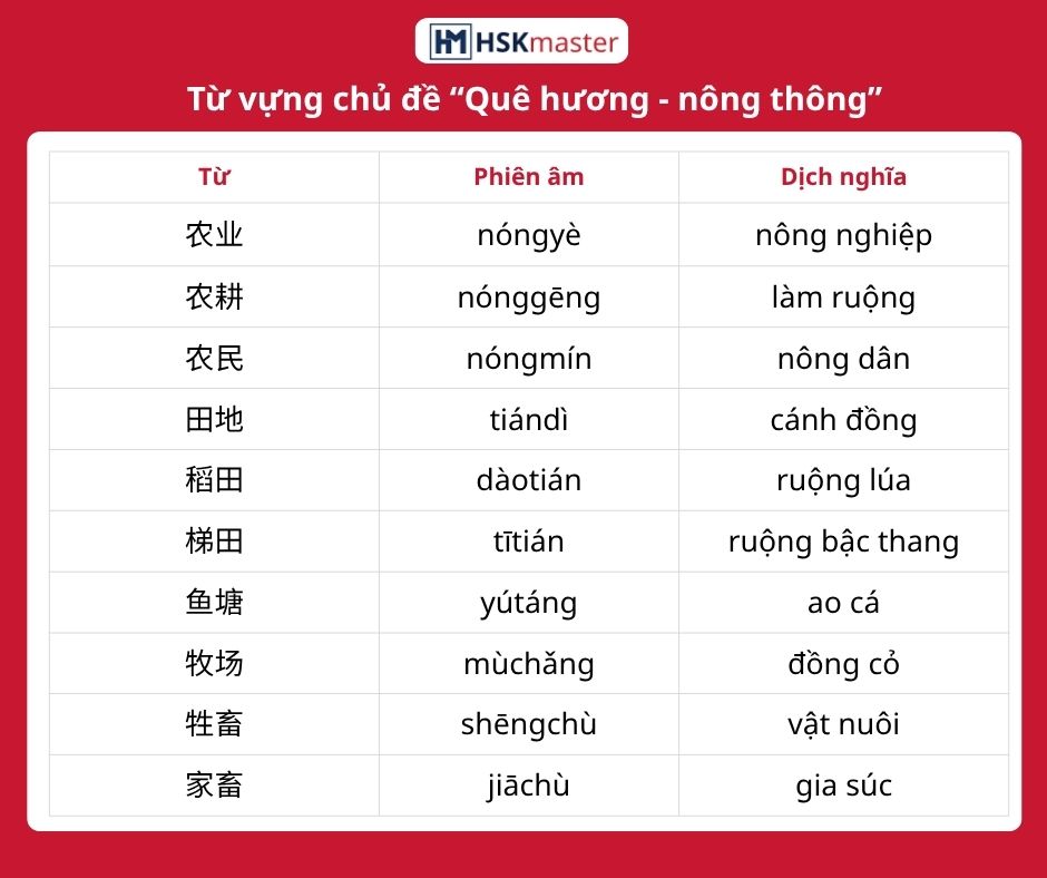 Dưới đây là các trường từ vựng về quê hương bằng tiếng Trung để bạn tham khảo.